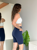 A modelagem ciclista valoriza a silhueta e oferece segurança durante o uso, enquanto o cós anatômico garante sustentação e conforto ao longo do dia. O bolso lateral funcional traz praticidade para carregar itens essenciais, como celular, sem comprometer o visual.