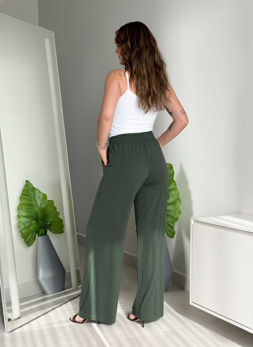 A modelagem pantalona alonga a silhueta, enquanto o bolso frontal funcional traz praticidade e um toque moderno ao visual. Ideal para compor desde produções casuais até looks mais sofisticados, apenas trocando os acessórios.