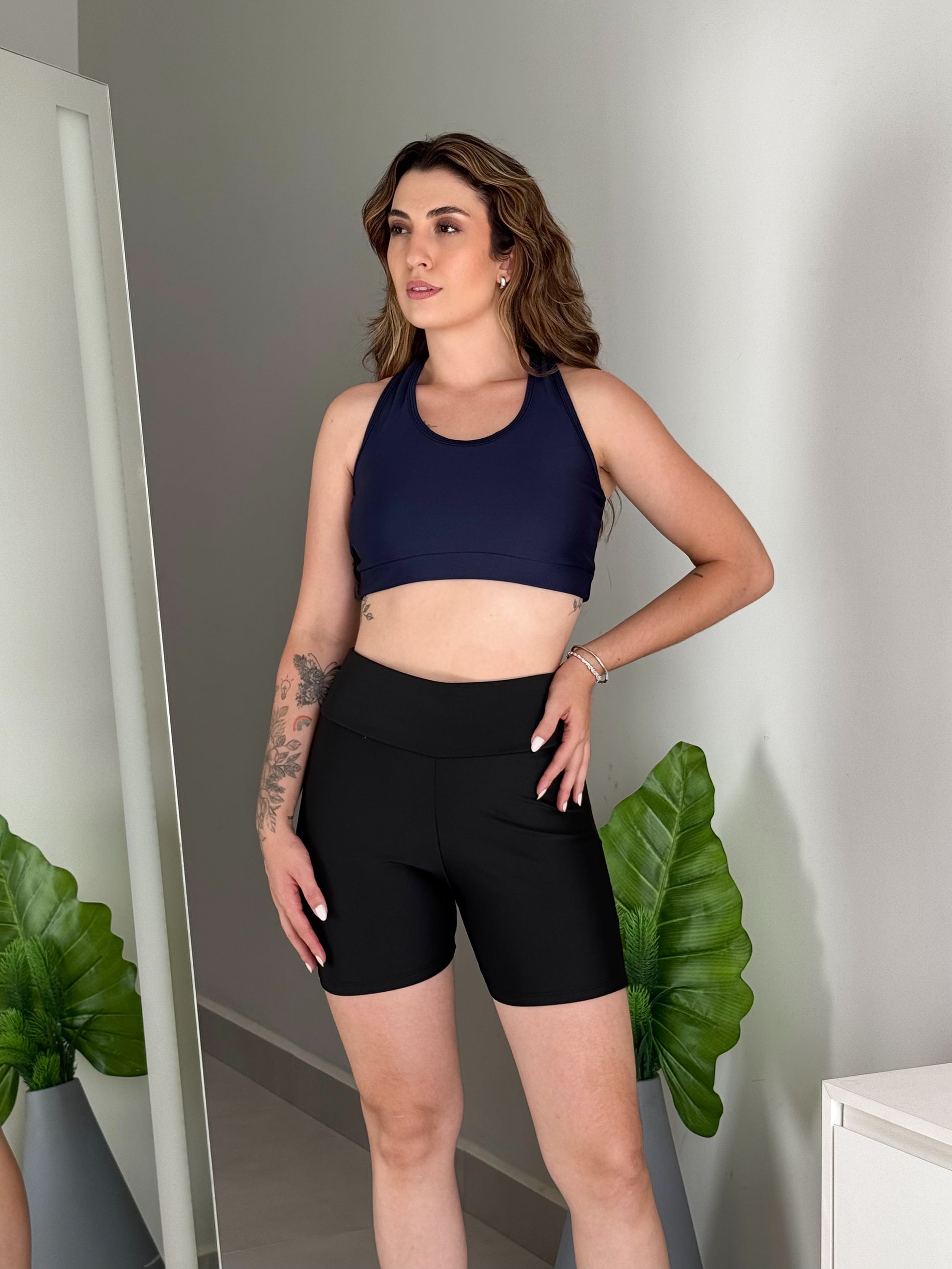 O Short Meia-Coxa em Poliéster é aquela peça prática e confortável que acompanha a rotina com leveza e liberdade de movimento.